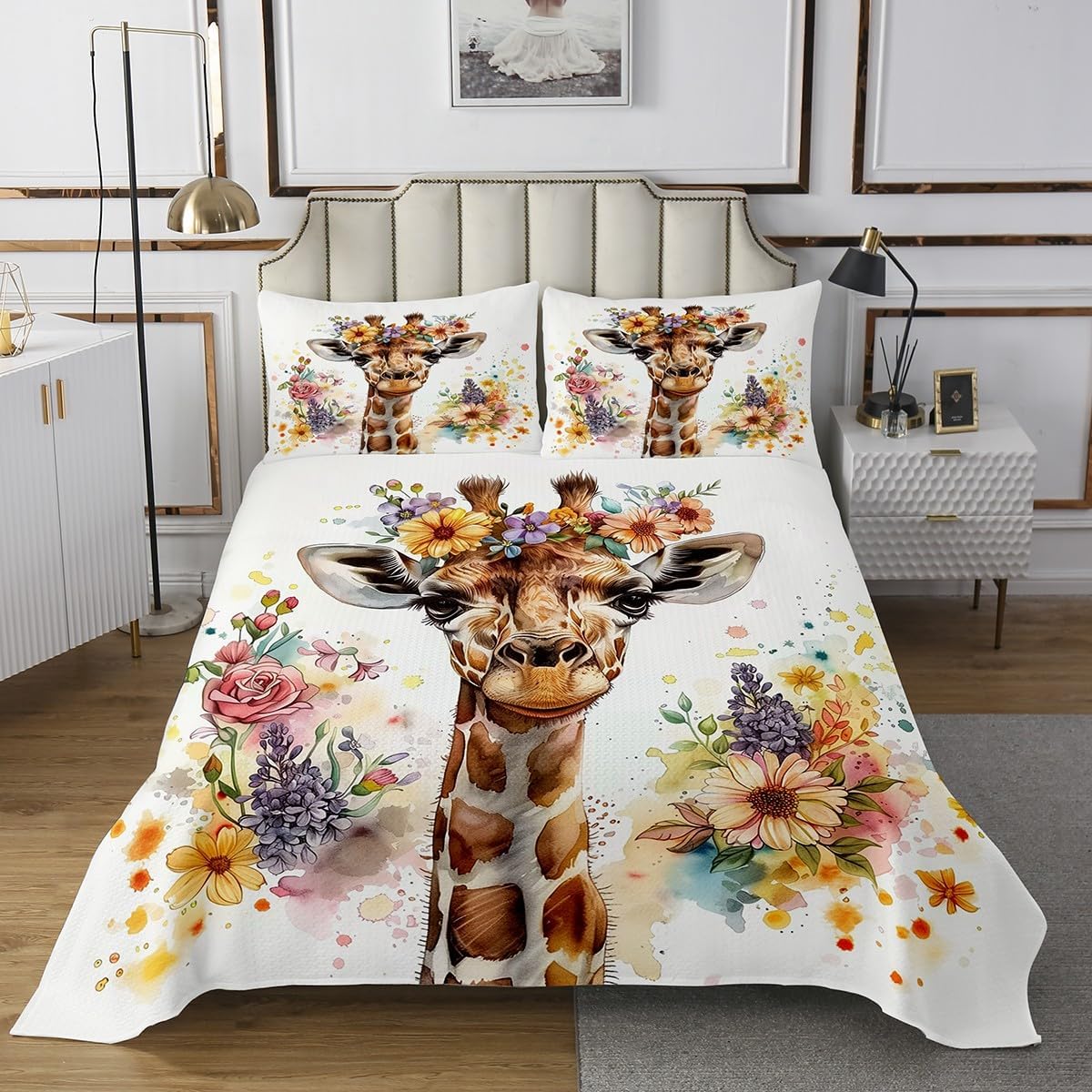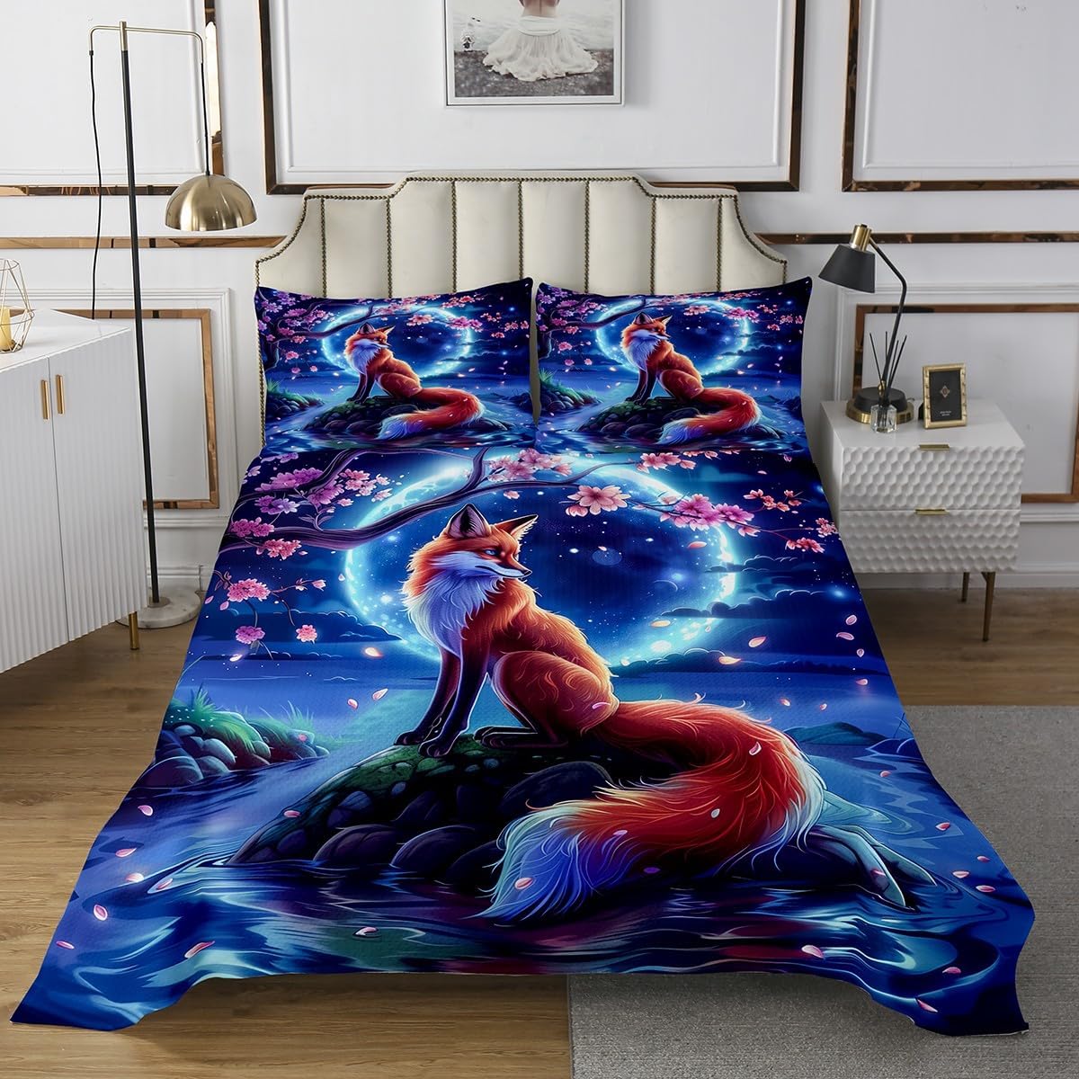 Best blessings: Makeover your bedrooms every season with our bedspread sets. Perfect item for your room,girls boys youth room,master bedroom. Size information: 1 Twin size quilted bedspread 68" W X 90" L and 1 quilted pillowcase 30" W X 20" L . 1 Queen size quilted bedspread 90" W X 90" L and 2 quilted pillowcases 30" W X 20" L . 1 King size quilted bedspread 104" W X 90" L and 2 quilted pillowcases 36" W X 20" L . Useful and practical: A luxurious product for homes,dorm rooms,hotels,guest rooms.Practical to use for being polyester,feels like cotton which is super soft and breathable. No chemicals used,no dye substance harming the health of you or your family. Unique design: Vivid colors won't fade thanks to new 3d digital printing methods.These unique designs match well with various color palettes of your rugs,curtains,headboard,furniture,and all other decor accessories. Personalized: As manufacturers of digital printed home textiles,we follow current trends and bring you the latest home fashion. Note: The bedspread and pillowcases are printed on the front side only,the back of them are white colored.Comforter is not included in the set.