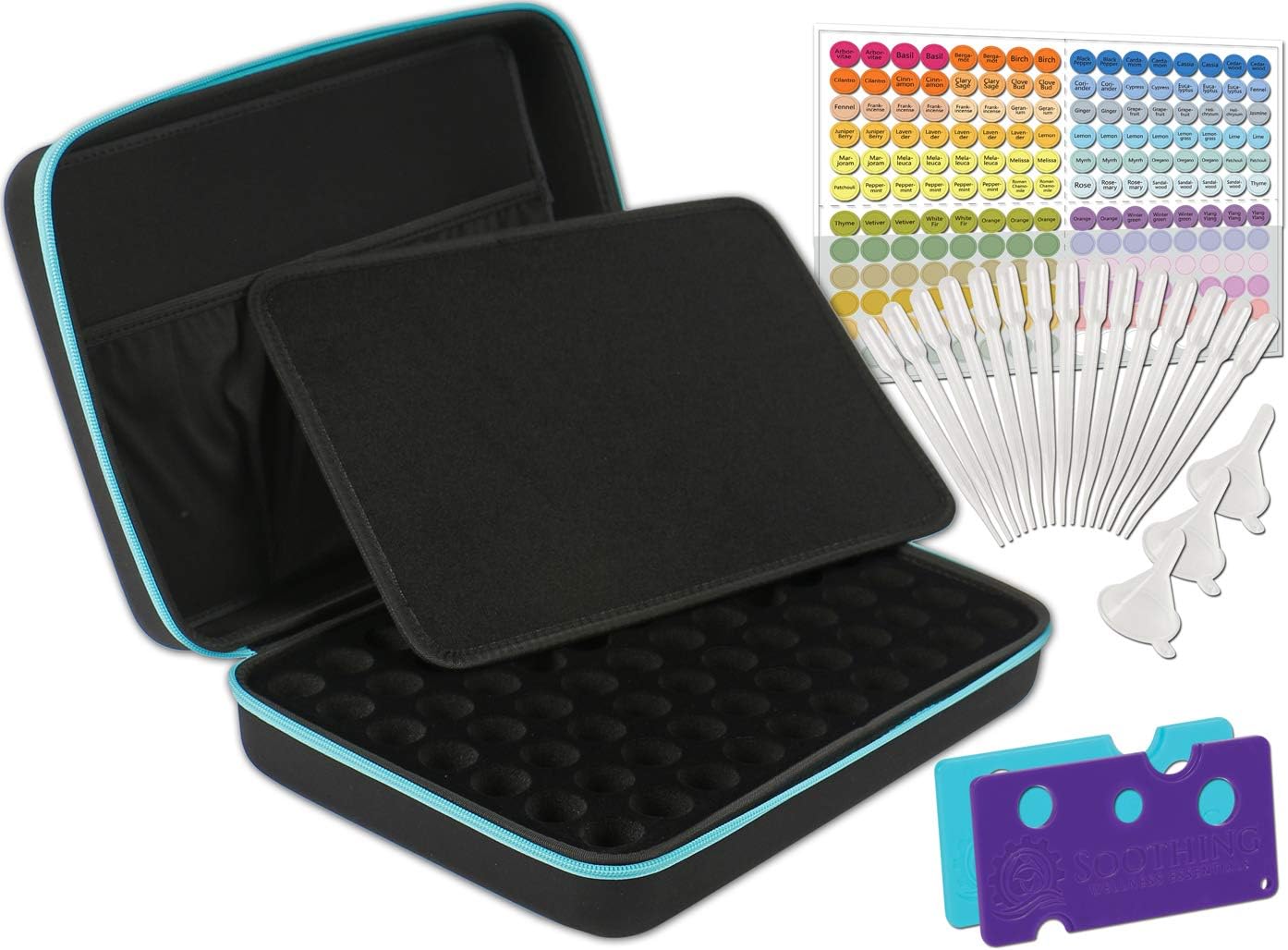Essential Oils Carrying Case for 5ml, 10ml and 15ml Bottles - Hard Shell Exterior Storage Organizer Holds doTerra, Young Living and endless others The perfect case – Great for travel or at home. The perfect size just large enough to fit 5ml, 10ml or 15ml Bottles (mix and match them however you like based on your collection). The perfect on the go solution, fits neatly in your luggage or carry on for your long trips. Take it with you wherever you go with the convenient carrying handle as well. The best value – Our Essential Oils Case is much higher quality than other EVA cases at a better price and best of all you get to store more and different sized Essential Oils in one convenient case. Our premium EVA case also includes plush velvet on the top of the area where your Essential Oils are stored. Custom Designed – Manufactured with the customer in mind. Includes removable base for easy cleanup and a top quality cover that makes your bottles more secure and double safe. Our premium carrying case also includes two convenient pockets at the top to store your extras in. Premium Quality – Made from the strongest premium top quality EVA material that is sturdy, shock proof and flexible to hold various sizes of oils. When you close the quality zipper you will feel at ease knowing that your oils and accessories are safe for the next time you open the case again. Just the right size Our unique design saves on weight and space so that you can safely and securely store your oils collection in one convenient location at home or on the go. Click on the "Add to Cart" button at the top to add our Essential Oils Case to your essential oils collection.
